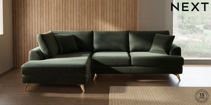 7.2.10 Parker Medium Corner Chaise - Left Hand Luxe Chenille Mid Green High Metal - Brass | Made Click here to use our website with more accessibility support, for example screen readers