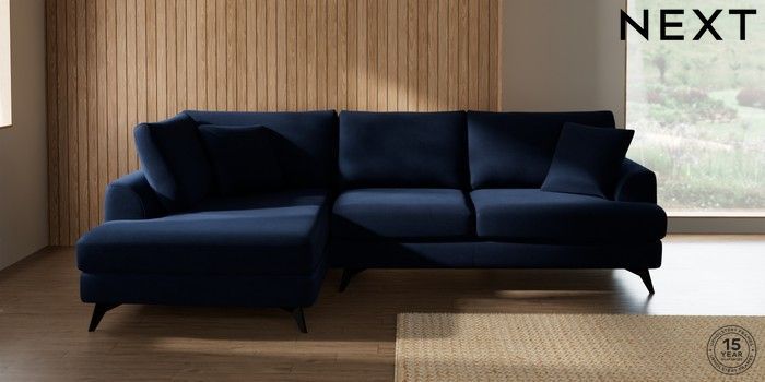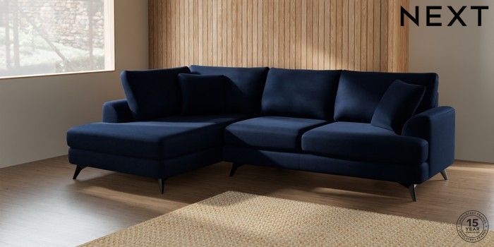 7.2.10 Parker Medium Corner Chaise - Left Hand Luxe Chenille Navy Blue High Metal - Black | Made Click here to use our website with more accessibility support, for example screen readers