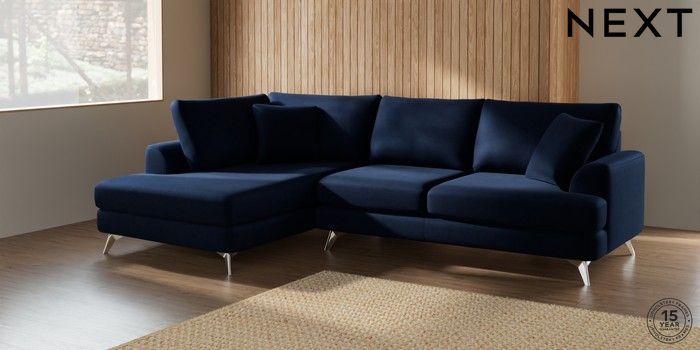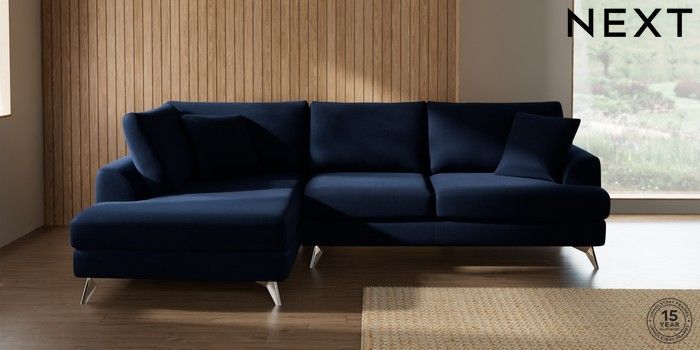 7.2.10 Parker Medium Corner Chaise - Left Hand Luxe Chenille Navy Blue High Metal - Chrome | Made Click here to use our website with more accessibility support, for example screen readers