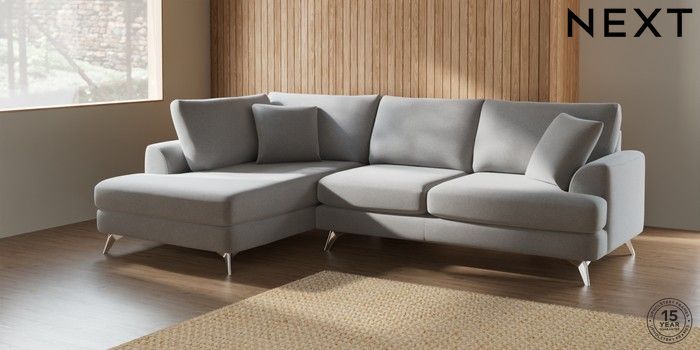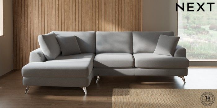 7.2.10 Parker Medium Corner Chaise - Left Hand Natural Mix Light Grey High Metal - Chrome | Made Click here to use our website with more accessibility support, for example screen readers