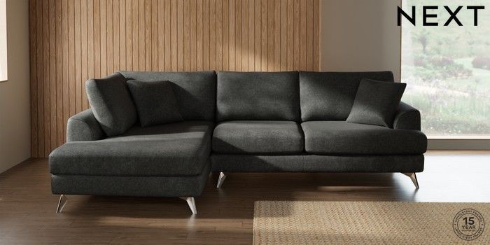 7.2.10 Parker Medium Corner Chaise - Left Hand Plush Chenille Dark Grey High Metal - Chrome | Made Click here to use our website with more accessibility support, for example screen readers