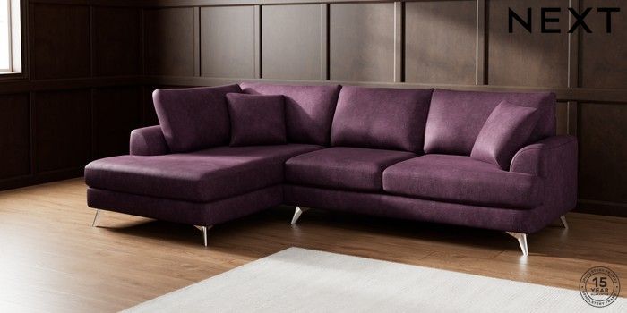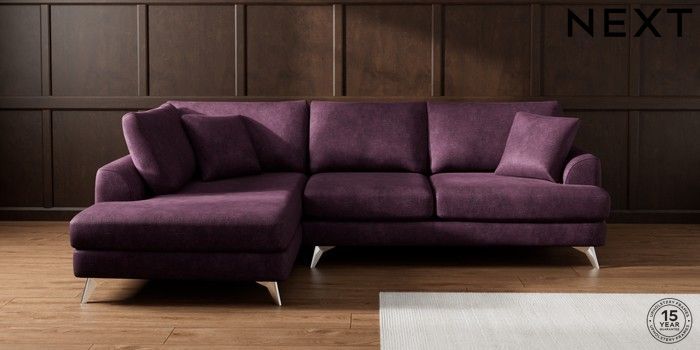 7.2.10 Parker Medium Corner Chaise - Left Hand Plush Chenille Dark Plum Purple High Metal - Chrome | Made Click here to use our website with more accessibility support, for example screen readers