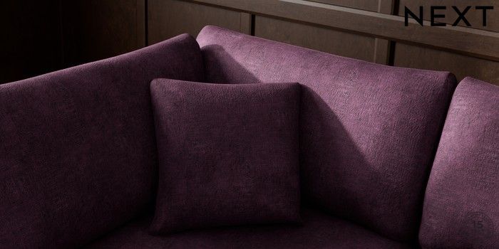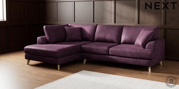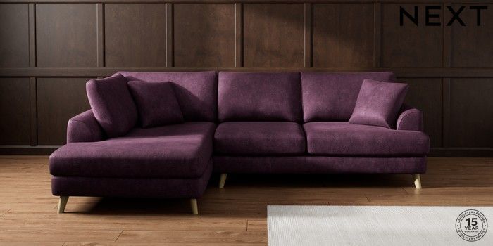 7.2.10 Parker Medium Corner Chaise - Left Hand Plush Chenille Dark Plum Purple Low Retro Tapered - Light | Made Click here to use our website with more accessibility support, for example screen readers