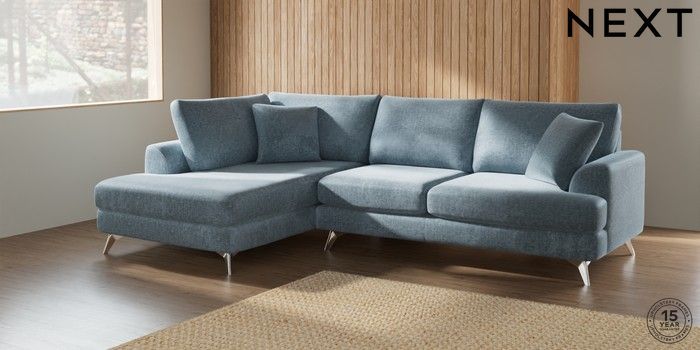7.2.10 Parker Medium Corner Chaise - Left Hand Plush Chenille Light Blue High Metal - Chrome | Made Click here to use our website with more accessibility support, for example screen readers