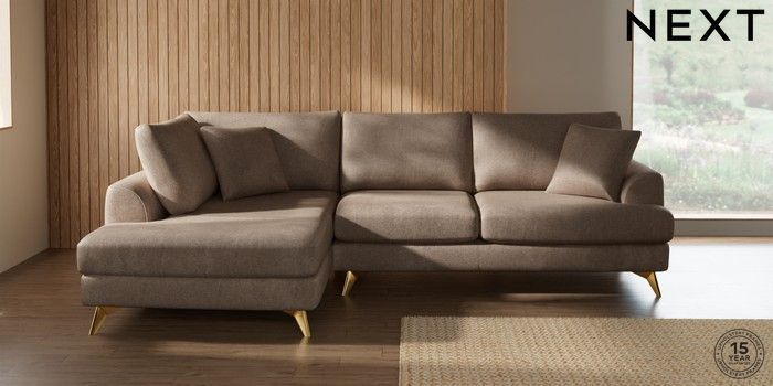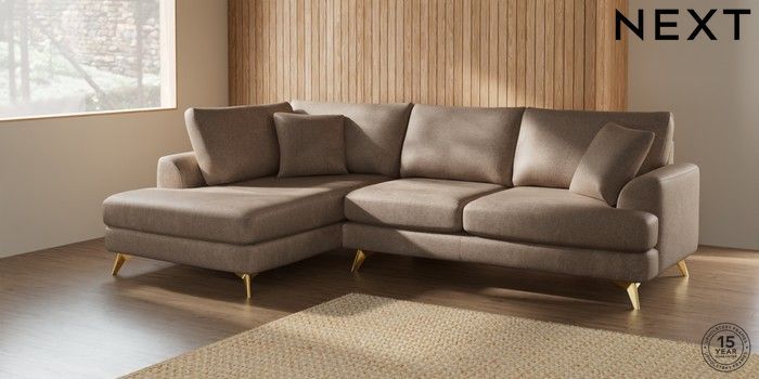 7.2.10 Parker Medium Corner Chaise - Left Hand Plush Chenille Mid Natural High Metal - Brass | Made Click here to use our website with more accessibility support, for example screen readers