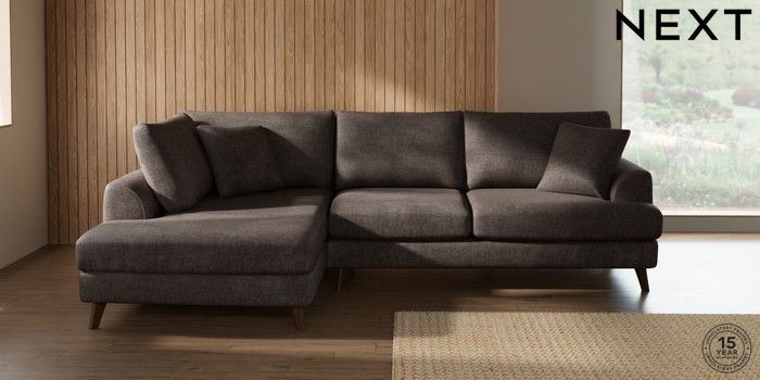 7.2.10 Parker Medium Corner Chaise - Left Hand Plush Chenille Mink Brown Low Retro Tapered - Mid | Made Click here to use our website with more accessibility support, for example screen readers