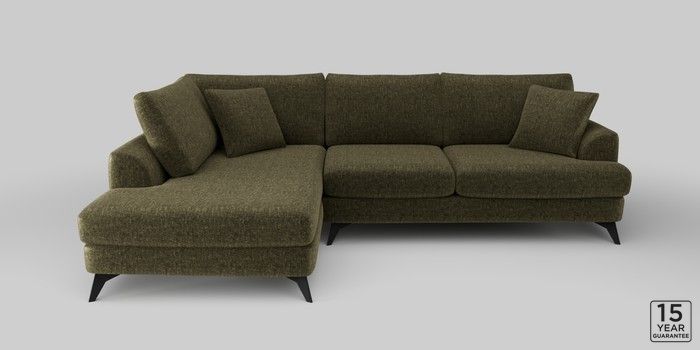 7.2.10 Parker Medium Corner Chaise - Left Hand Plush Chenille Moss Green High Metal - Black | Made Click here to use our website with more accessibility support, for example screen readers
