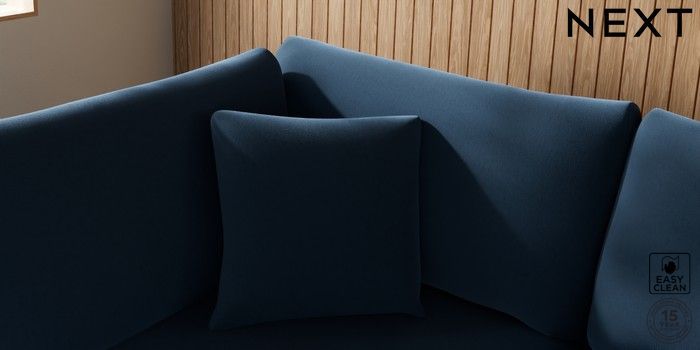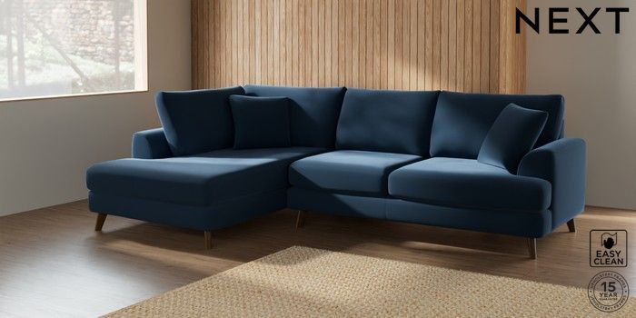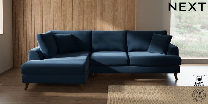 7.2.10 Parker Medium Corner Chaise - Left Hand Plush Velvet Easy Clean Airforce Blue Low Retro Tapered - Mid | Made Click here to use our website with more accessibility support, for example screen readers