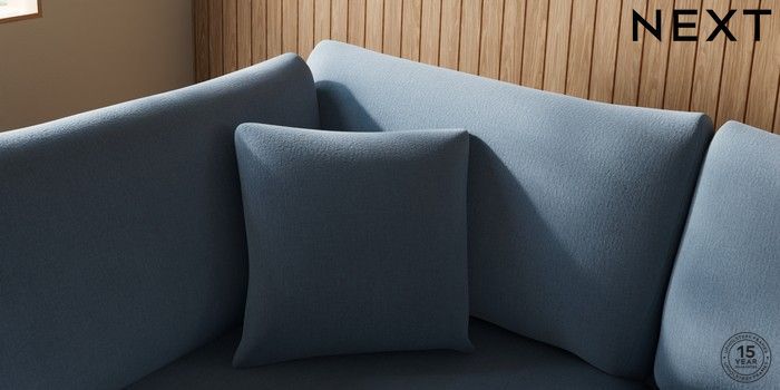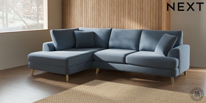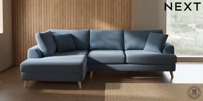 7.2.10 Parker Medium Corner Chaise - Left Hand Relaxed Linen Look Mid Blue Low Retro Tapered - Light | Made Click here to use our website with more accessibility support, for example screen readers