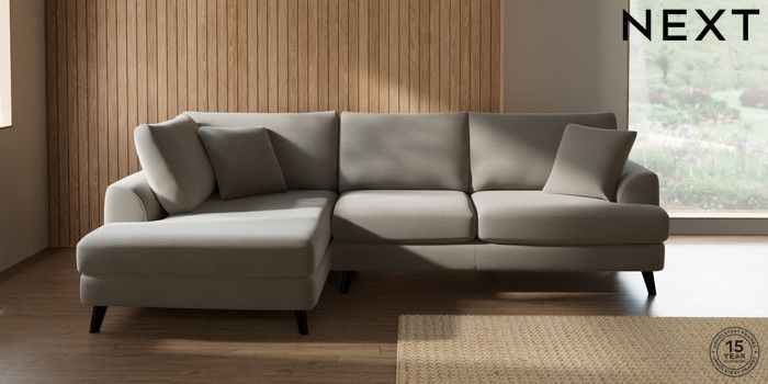 7.2.10 Parker Medium Corner Chaise - Left Hand Ripple Chenille Light Natural Low Retro Tapered - Dark | Made Click here to use our website with more accessibility support, for example screen readers