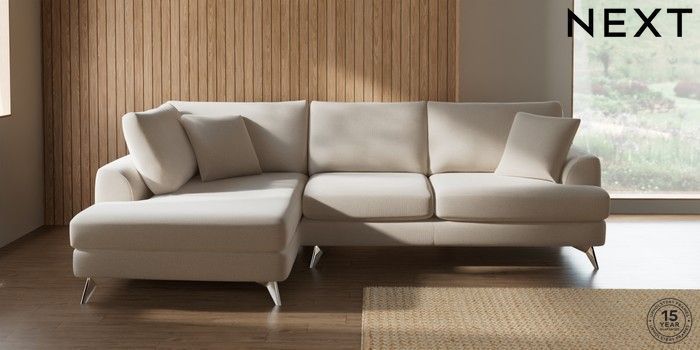 7.2.10 Parker Medium Corner Chaise - Left Hand Studio Chenille Oyster High Metal - Chrome | Made Click here to use our website with more accessibility support, for example screen readers