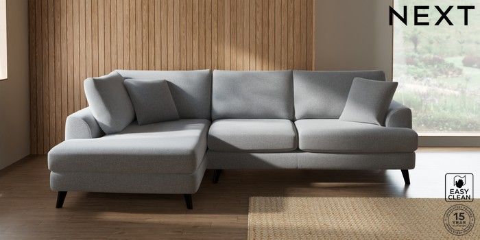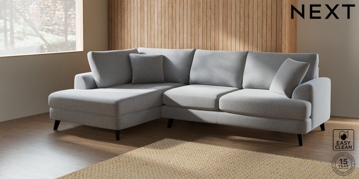 7.2.10 Parker Medium Corner Chaise - Left Hand Tweedy Blend Easy Clean Light Silver Grey Low Retro Tapered - Dark | Made Click here to use our website with more accessibility support, for example screen readers