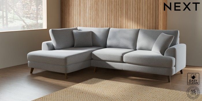 7.2.10 Parker Medium Corner Chaise - Left Hand Tweedy Blend Easy Clean Light Silver Grey Low Retro Tapered - Mid | Made Click here to use our website with more accessibility support, for example screen readers