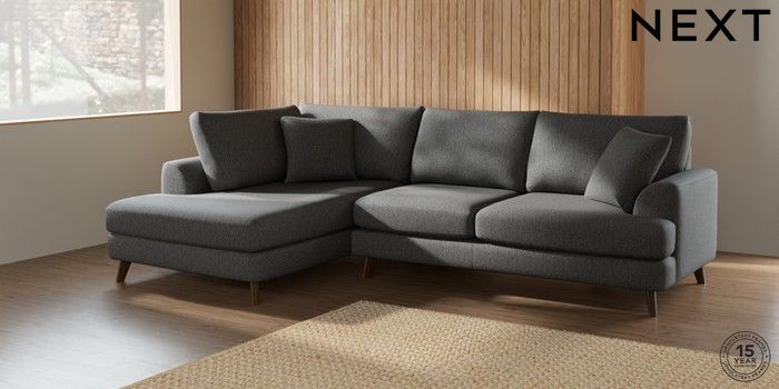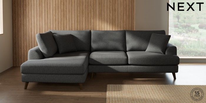 7.2.10 Parker Medium Corner Chaise - Left Hand Tweedy Chenille Dark Grey Low Retro Tapered - Mid | Made Click here to use our website with more accessibility support, for example screen readers