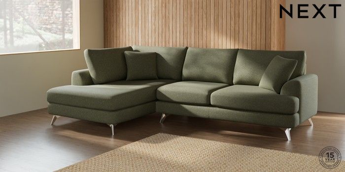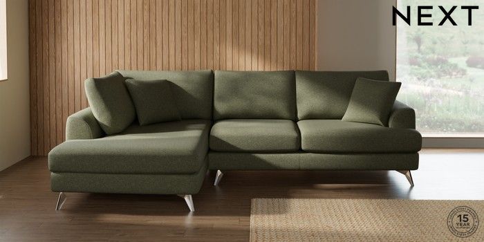 7.2.10 Parker Medium Corner Chaise - Left Hand Tweedy Chenille Mid Moss Green High Metal - Chrome | Made Click here to use our website with more accessibility support, for example screen readers