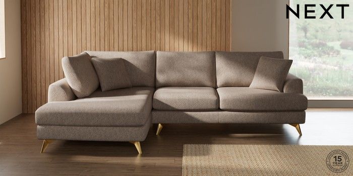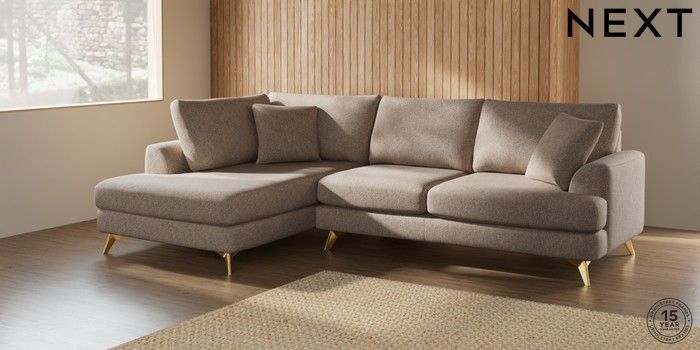 7.2.10 Parker Medium Corner Chaise - Left Hand Tweedy Chenille Mid Natural High Metal - Brass | Made Click here to use our website with more accessibility support, for example screen readers