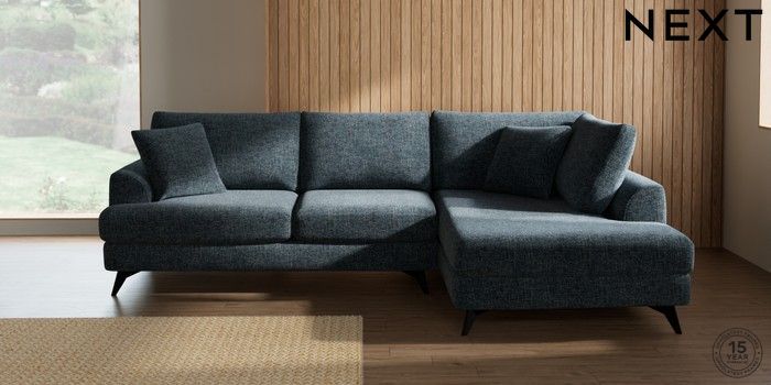 7.2.10 Parker Medium Corner Chaise - Right Hand Chunky Chenille Dark Navy Blue High Metal - Black | Made Click here to use our website with more accessibility support, for example screen readers
