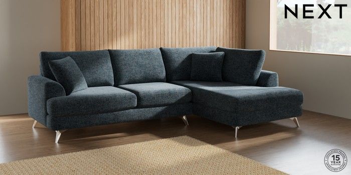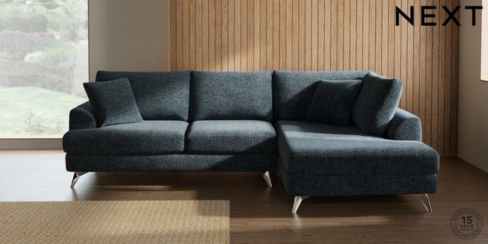 7.2.10 Parker Medium Corner Chaise - Right Hand Chunky Chenille Dark Navy Blue High Metal - Chrome | Made Click here to use our website with more accessibility support, for example screen readers