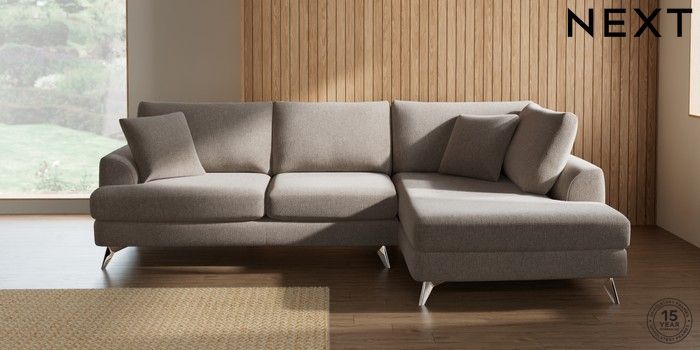 7.2.10 Parker Medium Corner Chaise - Right Hand Chunky Chenille Light Dove High Metal - Chrome | Made Click here to use our website with more accessibility support, for example screen readers