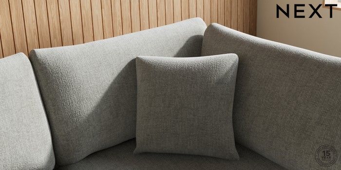 7.2.10 Parker Medium Corner Chaise - Right Hand Chunky Chenille Light Grey Low Retro Tapered - Dark | Made Click here to use our website with more accessibility support, for example screen readers