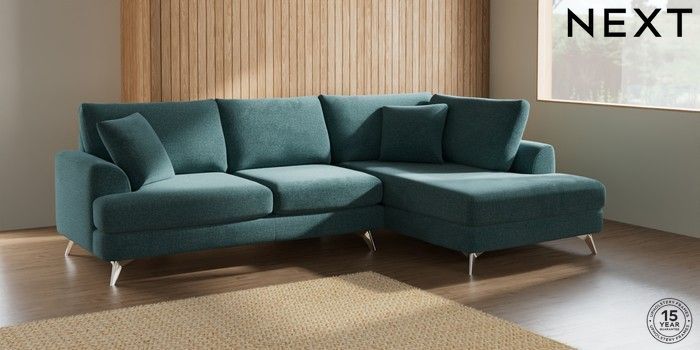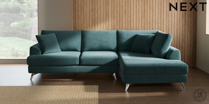 7.2.10 Parker Medium Corner Chaise - Right Hand Chunky Chenille Mid Teal Green High Metal - Chrome | Made Click here to use our website with more accessibility support, for example screen readers