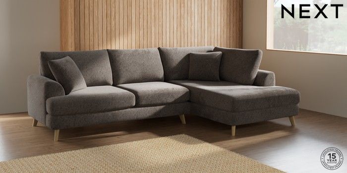 7.2.10 Parker Medium Corner Chaise - Right Hand Chunky Chenille Mink Brown Low Retro Tapered - Light | Made Click here to use our website with more accessibility support, for example screen readers