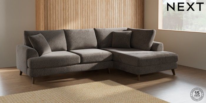 7.2.10 Parker Medium Corner Chaise - Right Hand Chunky Chenille Mink Brown Low Retro Tapered - Mid | Made Click here to use our website with more accessibility support, for example screen readers