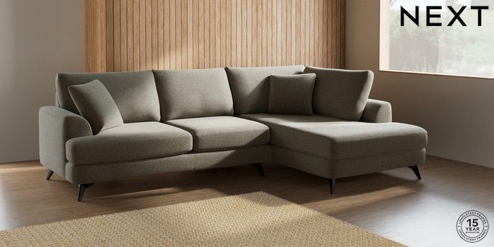 7.2.10 Parker Medium Corner Chaise - Right Hand Chunky Marl Light Olive Green High Metal - Black | Made Click here to use our website with more accessibility support, for example screen readers