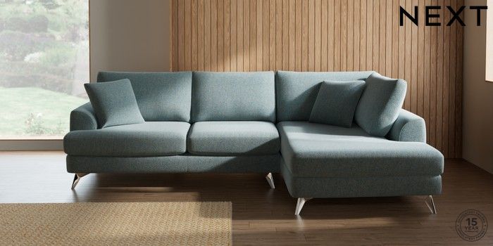 7.2.10 Parker Medium Corner Chaise - Right Hand Chunky Marl Mid Blue High Metal - Chrome | Made Click here to use our website with more accessibility support, for example screen readers
