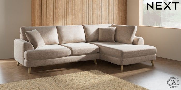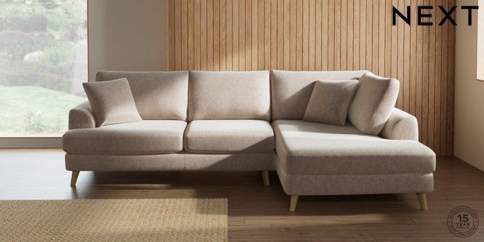 7.2.10 Parker Medium Corner Chaise - Right Hand Cotswold Chenille Light Natural Low Retro Tapered - Light | Made Click here to use our website with more accessibility support, for example screen readers