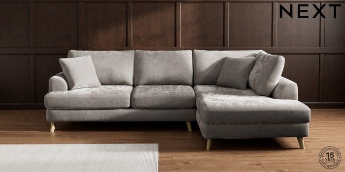 7.2.10 Parker Medium Corner Chaise - Right Hand Distressed Velour French Grey Low Retro Tapered - Light | Made Click here to use our website with more accessibility support, for example screen readers
