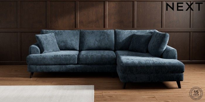 7.2.10 Parker Medium Corner Chaise - Right Hand Distressed Velour Midnight Blue Low Retro Tapered - Dark | Made Click here to use our website with more accessibility support, for example screen readers