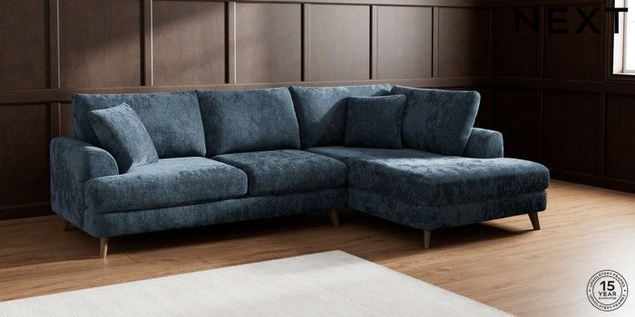 7.2.10 Parker Medium Corner Chaise - Right Hand Distressed Velour Midnight Blue Low Retro Tapered - Mid | Made Click here to use our website with more accessibility support, for example screen readers