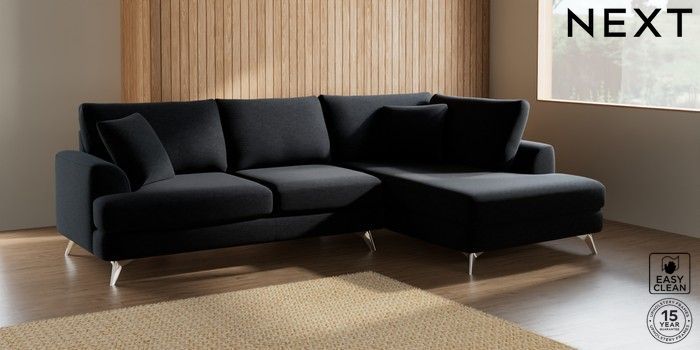 7.2.10 Parker Medium Corner Chaise - Right Hand Fine Chenille Easy Clean Black High Metal - Chrome | Made Click here to use our website with more accessibility support, for example screen readers