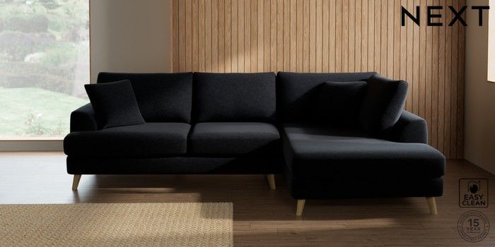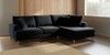 7.2.10 Parker Medium Corner Chaise - Right Hand Fine Chenille Easy Clean Black Low Retro Tapered - Light | Made Click here to use our website with more accessibility support, for example screen readers