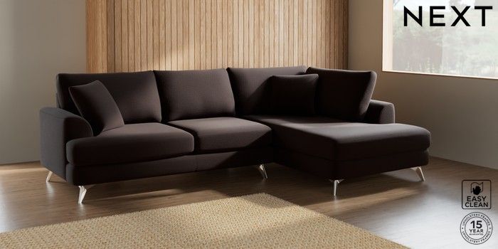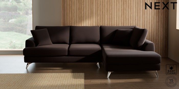 7.2.10 Parker Medium Corner Chaise - Right Hand Fine Chenille Easy Clean Chocolate Brown High Metal - Chrome | Made Click here to use our website with more accessibility support, for example screen readers