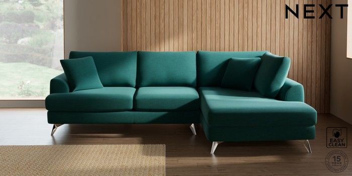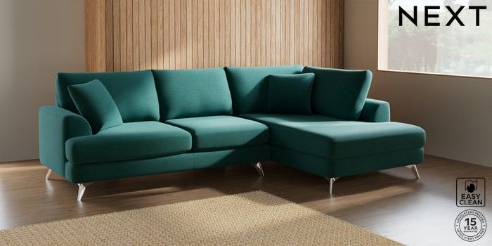 7.2.10 Parker Medium Corner Chaise - Right Hand Fine Chenille Easy Clean Dark Juniper Green High Metal - Chrome | Made Click here to use our website with more accessibility support, for example screen readers