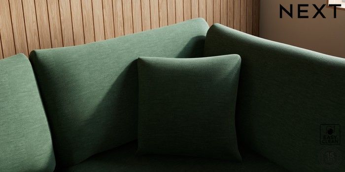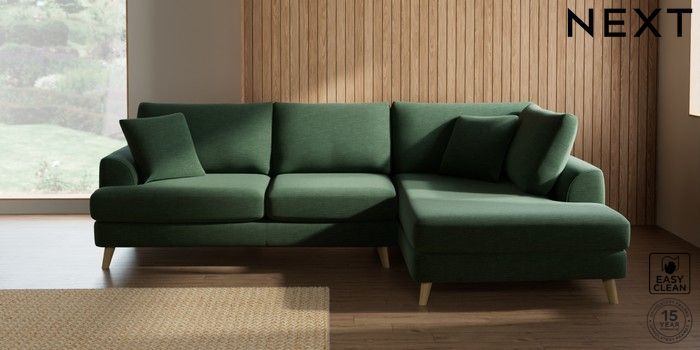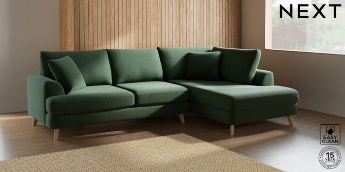 7.2.10 Parker Medium Corner Chaise - Right Hand Fine Chenille Easy Clean Mid Khaki Green Low Retro Tapered - Light | Made Click here to use our website with more accessibility support, for example screen readers