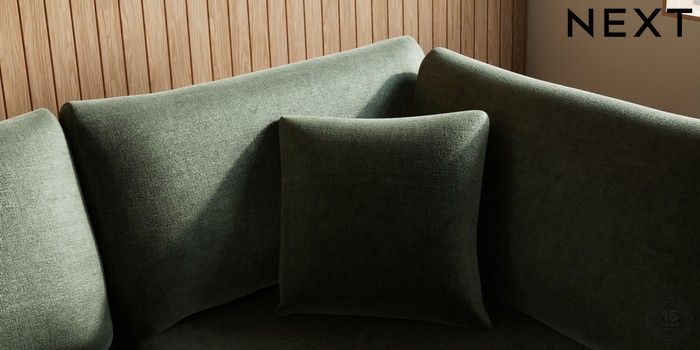 7.2.10 Parker Medium Corner Chaise - Right Hand Luxe Chenille Mid Green Low Retro Tapered - Light | Made Click here to use our website with more accessibility support, for example screen readers
