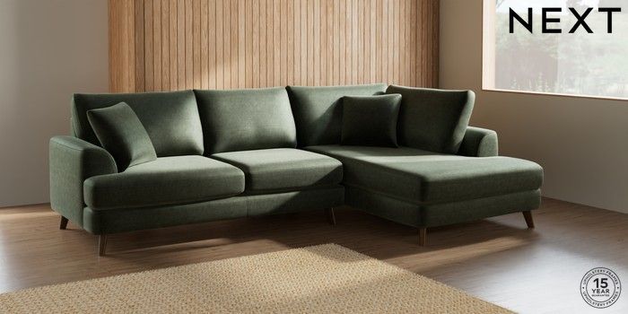 7.2.10 Parker Medium Corner Chaise - Right Hand Luxe Chenille Mid Green Low Retro Tapered - Mid | Made Click here to use our website with more accessibility support, for example screen readers