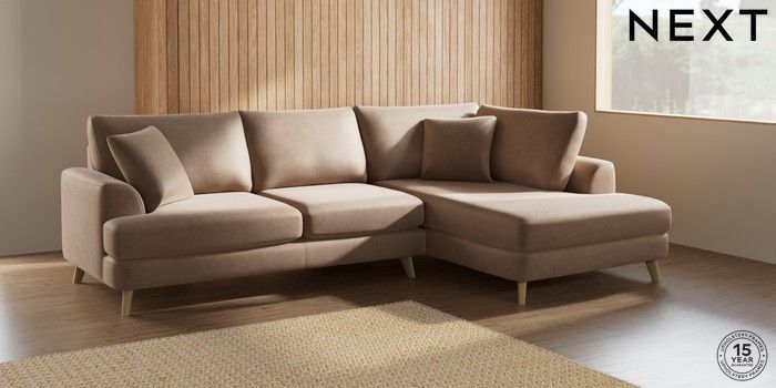 7.2.10 Parker Medium Corner Chaise - Right Hand Luxe Chenille Mid Natural Low Retro Tapered - Light | Made Click here to use our website with more accessibility support, for example screen readers