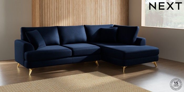 7.2.10 Parker Medium Corner Chaise - Right Hand Luxe Chenille Navy Blue High Metal - Brass | Made Click here to use our website with more accessibility support, for example screen readers