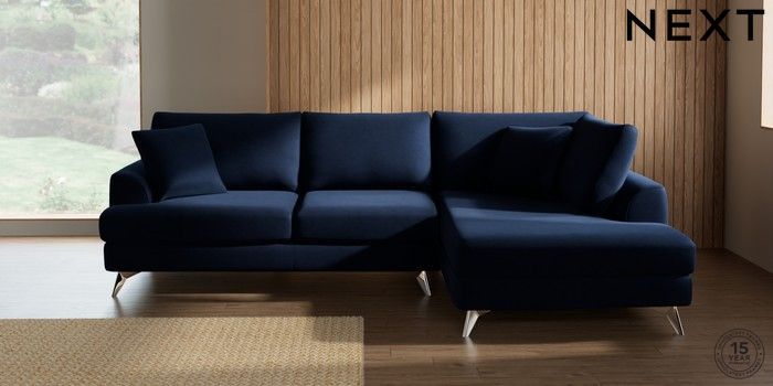 7.2.10 Parker Medium Corner Chaise - Right Hand Luxe Chenille Navy Blue High Metal - Chrome | Made Click here to use our website with more accessibility support, for example screen readers