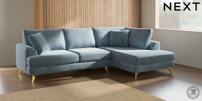 7.2.10 Parker Medium Corner Chaise - Right Hand Plush Chenille Light Blue High Metal - Brass | Made Click here to use our website with more accessibility support, for example screen readers