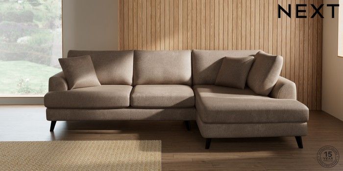 7.2.10 Parker Medium Corner Chaise - Right Hand Plush Chenille Mid Natural Low Retro Tapered - Dark | Made Click here to use our website with more accessibility support, for example screen readers