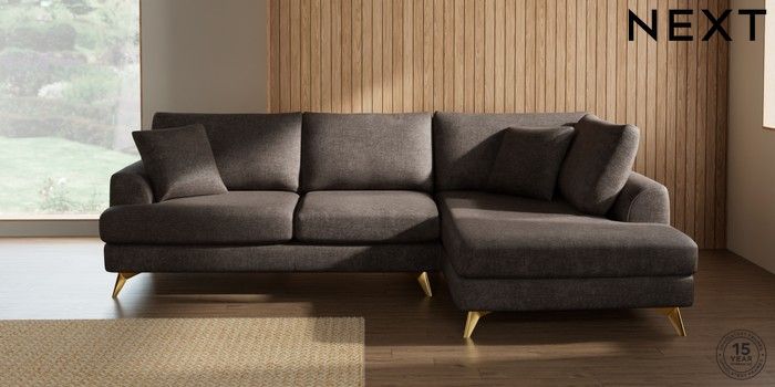 7.2.10 Parker Medium Corner Chaise - Right Hand Plush Chenille Mink Brown High Metal - Brass | Made Click here to use our website with more accessibility support, for example screen readers