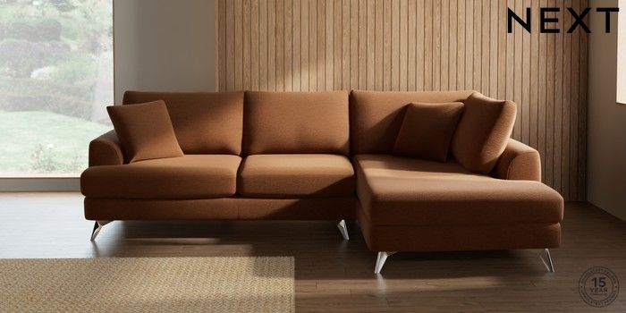 7.2.10 Parker Medium Corner Chaise - Right Hand Ripple Chenille Mid Rust Brown High Metal - Chrome | Made Click here to use our website with more accessibility support, for example screen readers