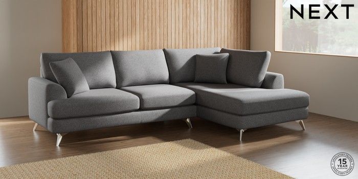 7.2.10 Parker Medium Corner Chaise - Right Hand Studio Chenille Mid Grey High Metal - Chrome | Made Click here to use our website with more accessibility support, for example screen readers