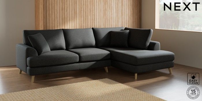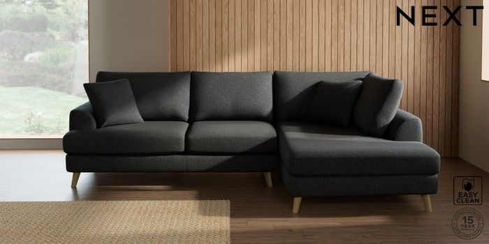 7.2.10 Parker Medium Corner Chaise - Right Hand Tweedy Blend Easy Clean Charcoal Grey Low Retro Tapered - Light | Made Click here to use our website with more accessibility support, for example screen readers