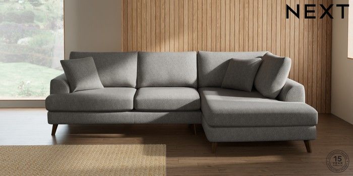 7.2.10 Parker Medium Corner Chaise - Right Hand Tweedy Chenille Mid Grey Low Retro Tapered - Mid | Made Click here to use our website with more accessibility support, for example screen readers